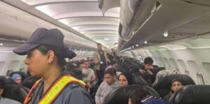 Image: A South African Police Services (Saps) officer on board the aircraft that landed at O R Tambo International Airport in Johannesburg on Friday November 14. (Photo: Palestine Embassy in South Africa)